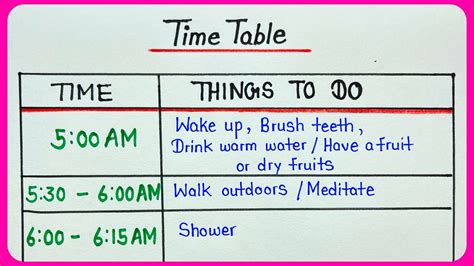 early morning time table
