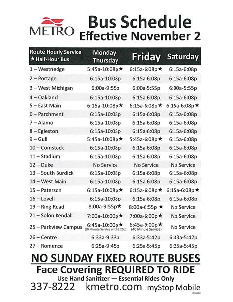 metro bus hours