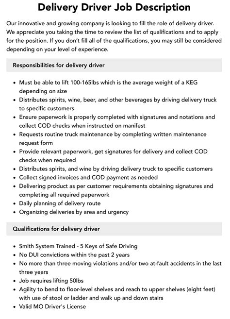 package delivery driver job description