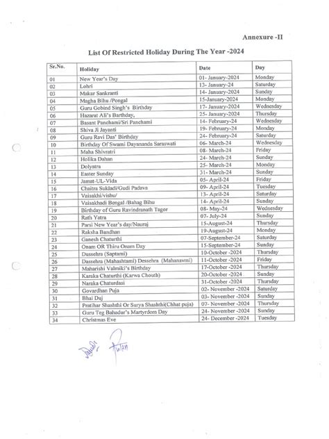 restricted holiday rules pdf