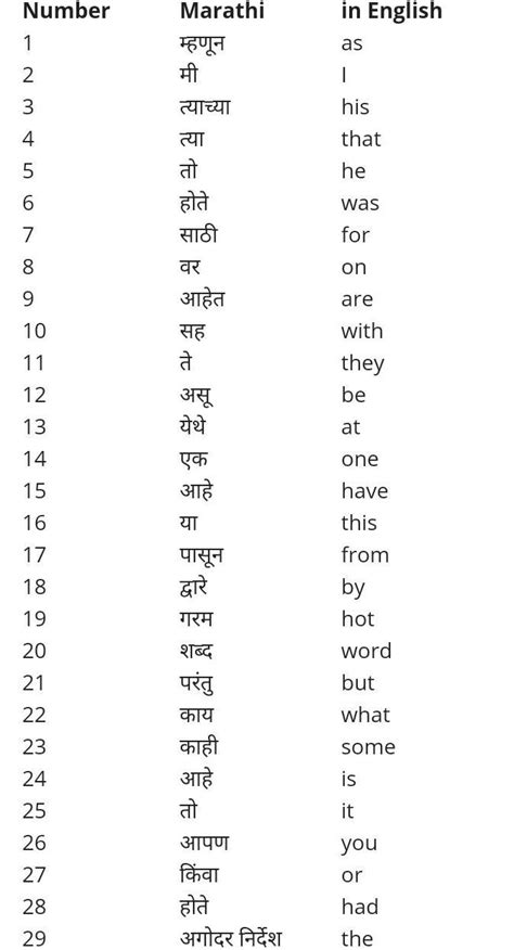sight words meaning in marathi with examples