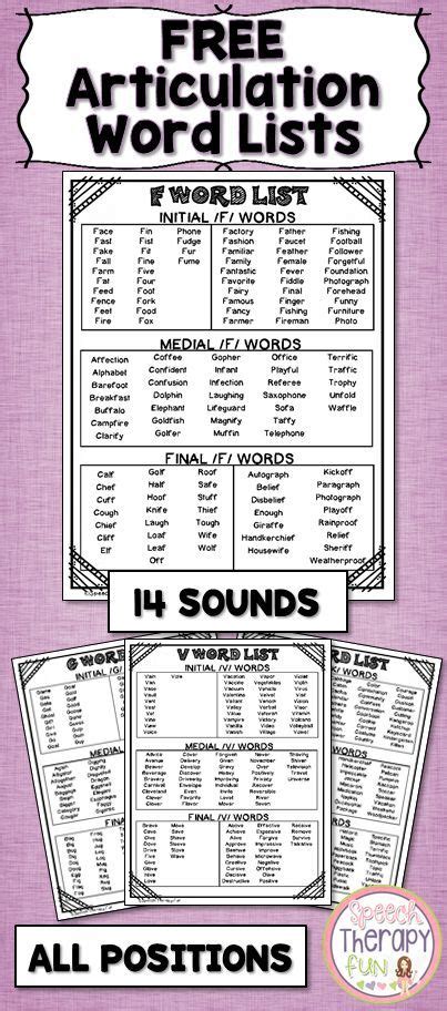 speech pathology word lists